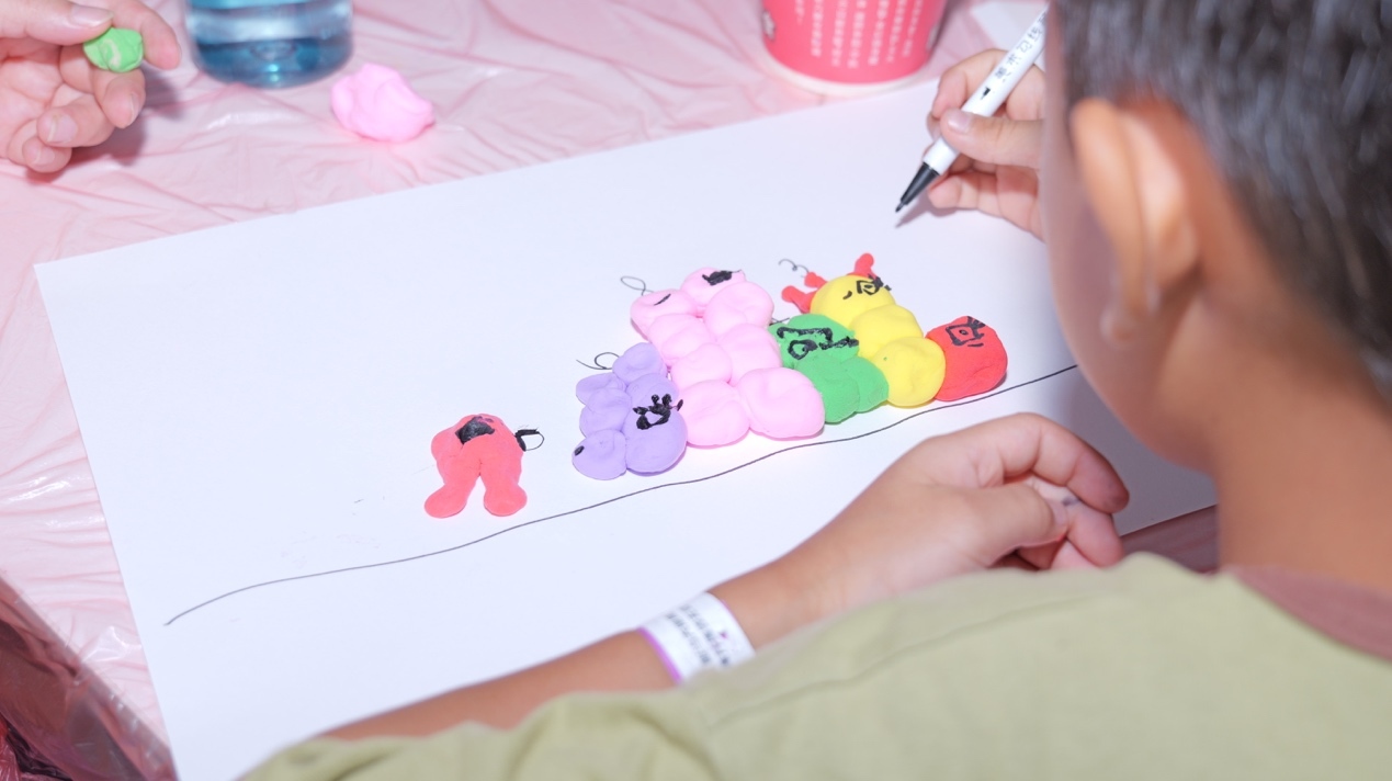 整个过程中,陈老师细心观察每个孩子的反应,适时给予鼓励和引导。她表示:"艺术创作能够帮助特需儿童更好地表达自己,增强自信心。通过绘画和捏塑,孩子们可以自由地表达内心的情感,这对他们的心理健康发展非常重要。"